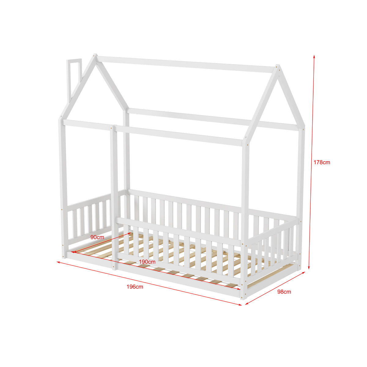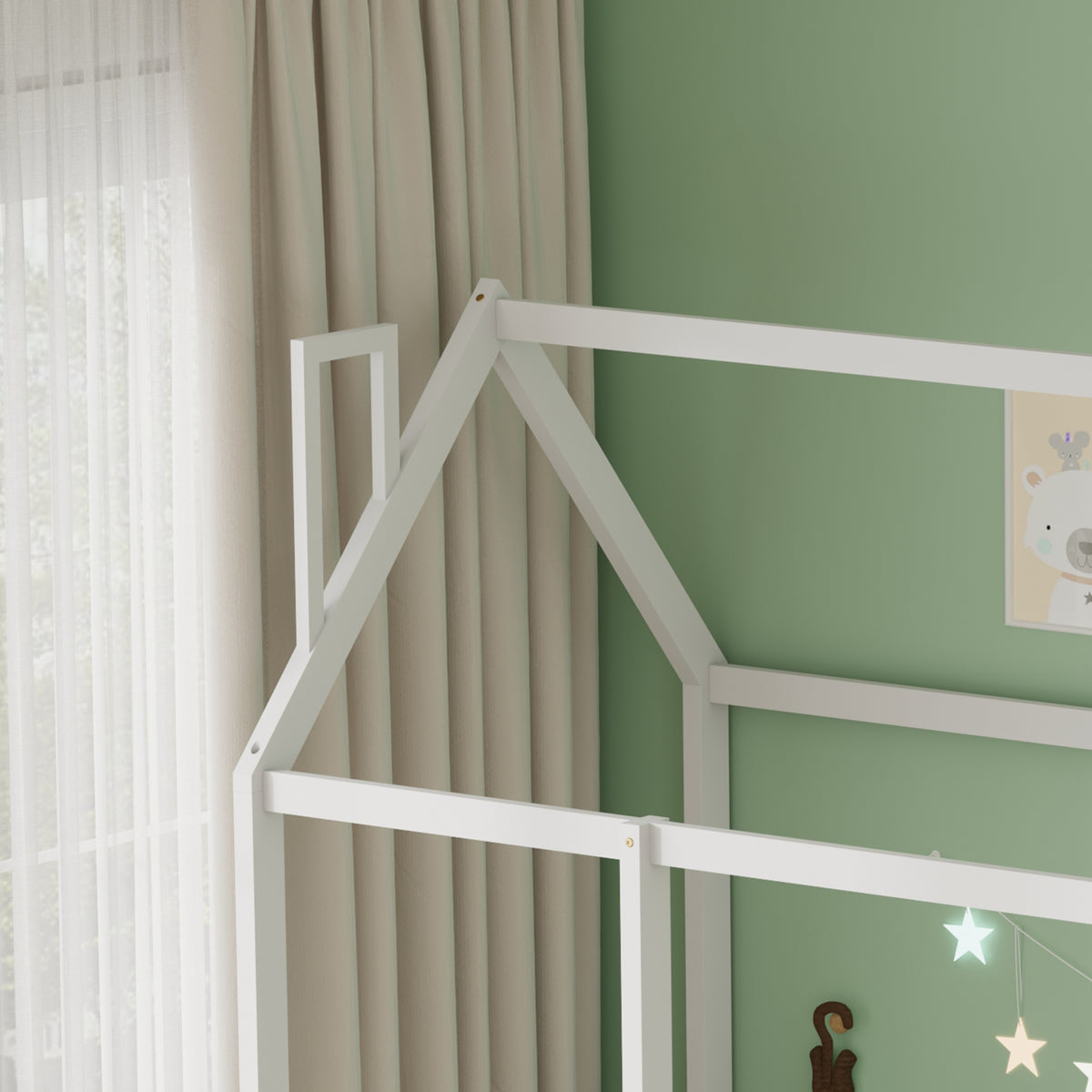 ★Transform your child's room into a magical haven! This adorable white kids bed features a charming rooftop with a cute decorative chimney, sparking imaginative play. The classic playhouse design creates a cozy and whimsical sleeping space that your little one will love, making bedtime something they look forward to.